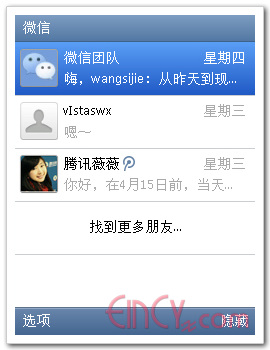 由于现在微信还是处于测试阶段,所以用户很少,注册了微信后找到好友成了一个非常麻烦的事,如果微信账号不和QQ账号独立,可能会方便一点。
