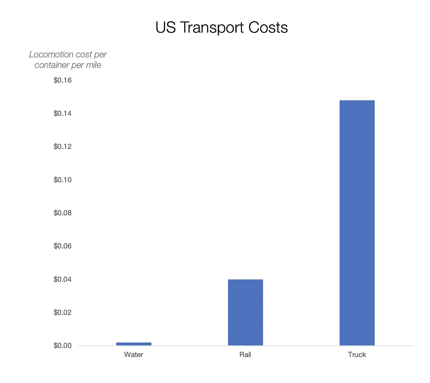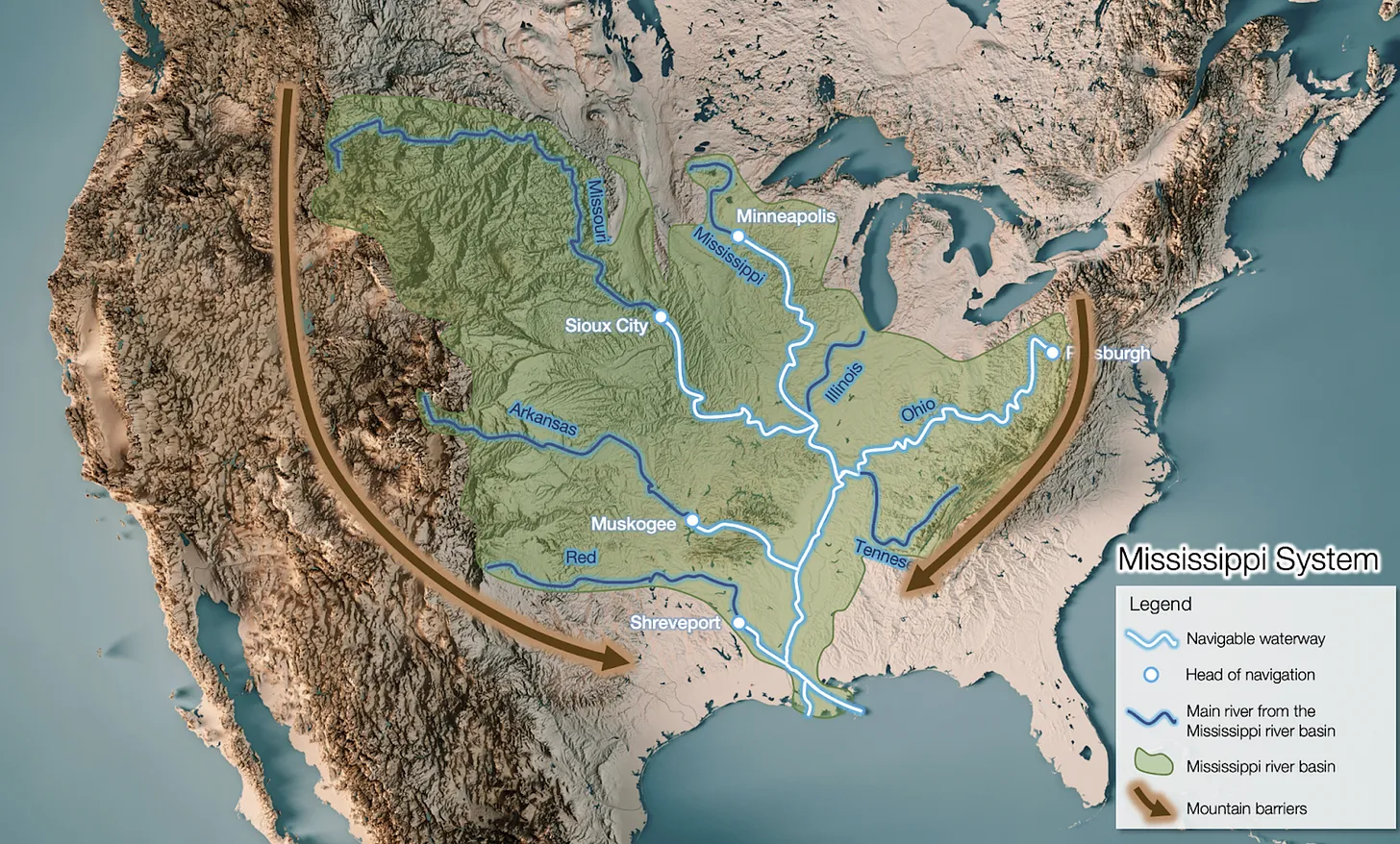 Between the Mississippi rivers and the intracoastal waterways, they amount to more internal navigable waterways than the rest of the world combined! What?!
