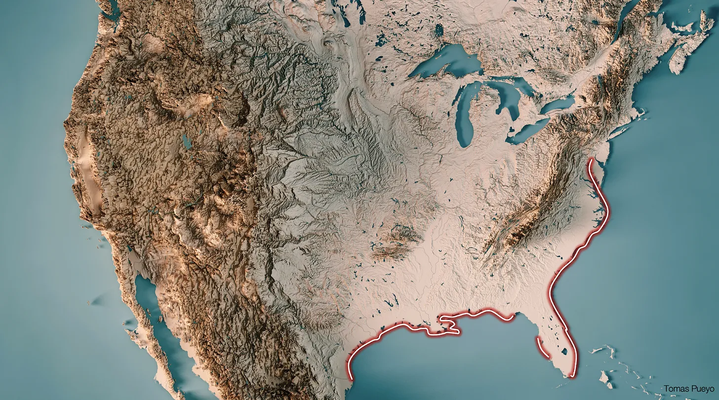 Then on top of these advantages, there’s a thing called “intracoastal waterway”: boats can travel from Boston to Mexico barely sailing through the sea. They can instead do so protected by chains of islands that cover nearly all of the US’ Atlantic coast.